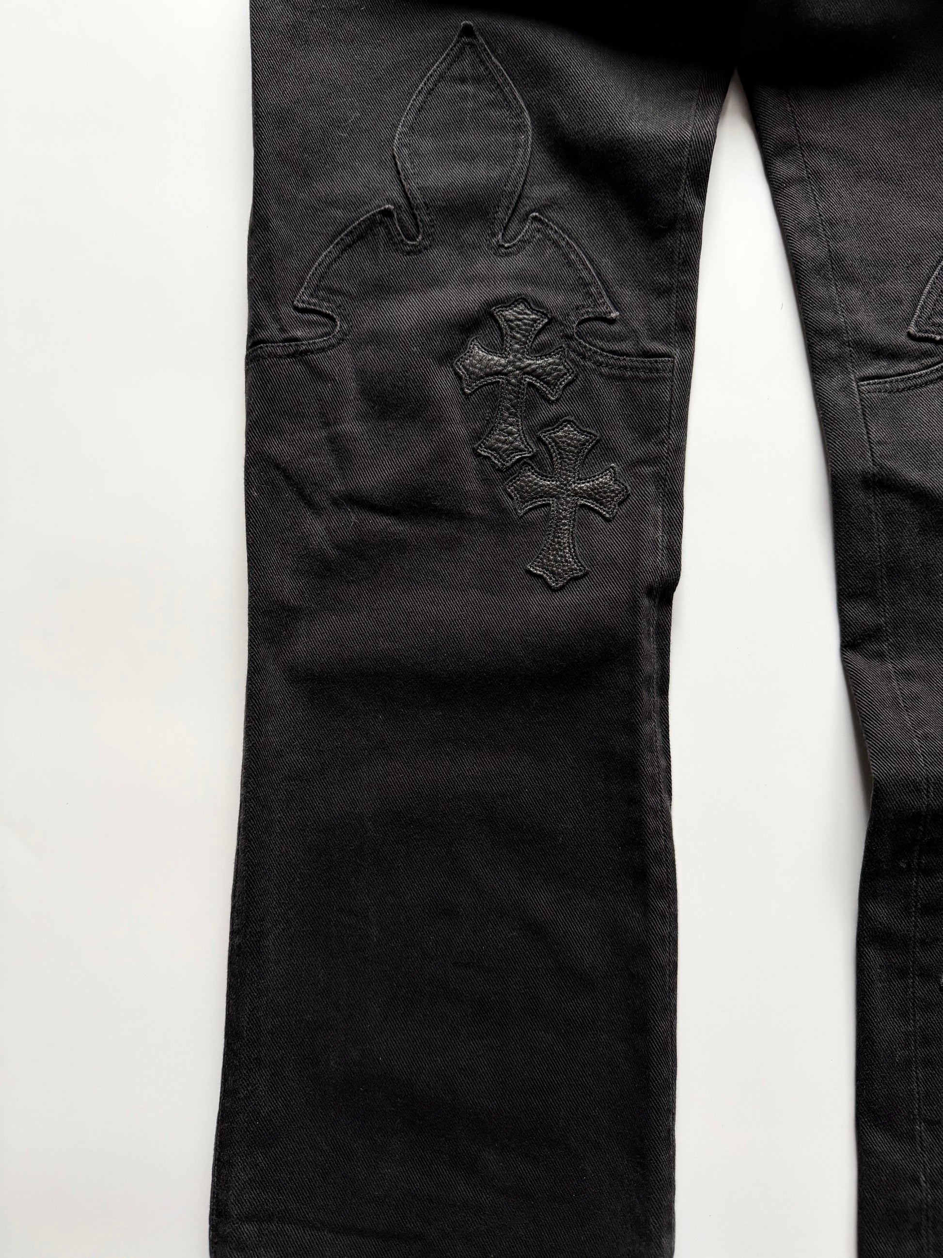 •Chrome Hearts Fleur Knee Cross Patch Jeans